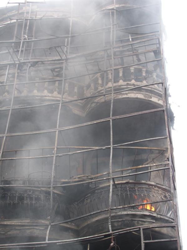 | Ngọn lửa nhanh chóng thiêu rụi cả siêu thị bốn tầng. Ảnh: Tuấn Nguyễn. |