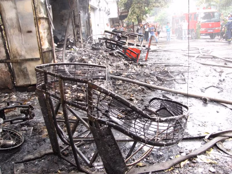 Siêu thị bán quần áo, đồ dùng trẻ em nên dễ bắt lửa, chỉ trong chốc lát, "bà hỏa" đã bao trùm toàn bộ tòa nhà bốn tầng này.