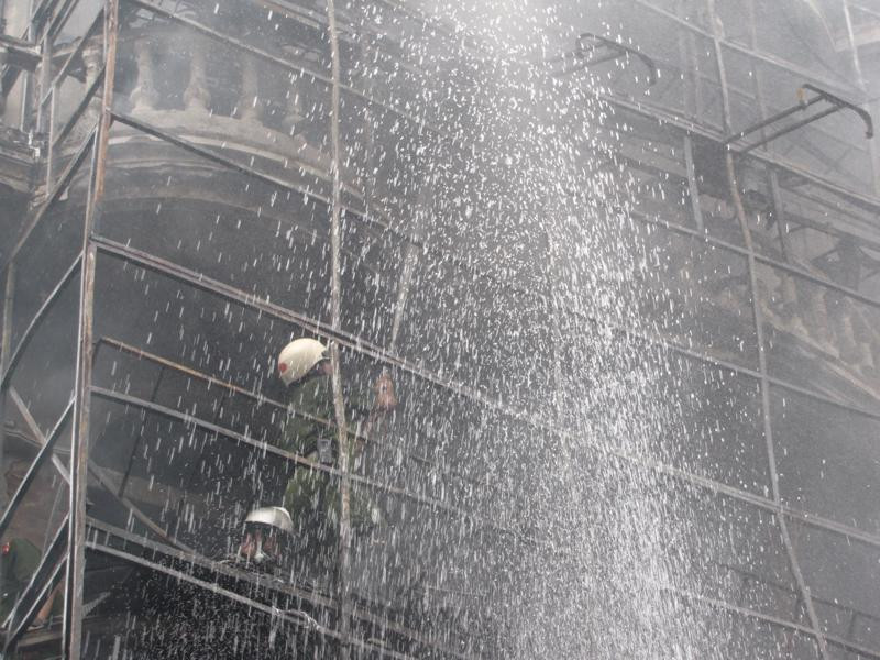 Sau khi nhận được tin báo khoảng 20 phút, bốn xe cứu hỏa được điều động tới hiện trường, khẩn trương phun nước dập lửa.