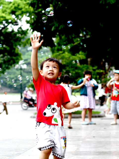 | Thoải mái với bong bóng xà phòng. |