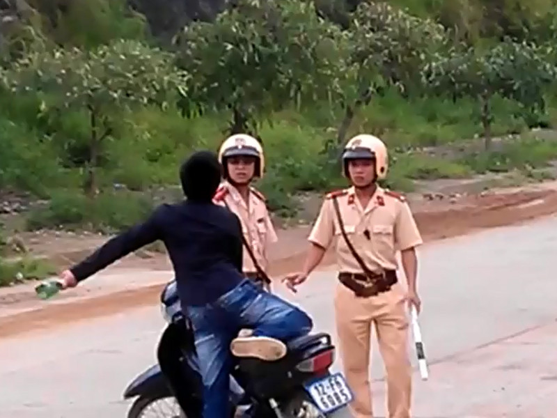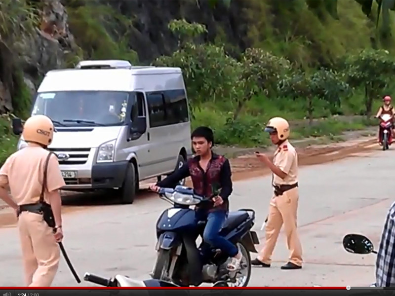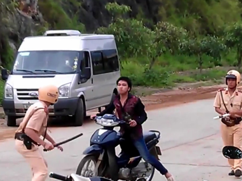 Ngày 8-6, trên trang Youtube xuất hiện clip nam thanh niên đi xe máy màu xanh BKS 12F5 – 6085, không đội mũ bảo hiểm. Hai chiến sĩ cảnh sát giao thông yêu cầu dừng xe kiểm tra hành chính.