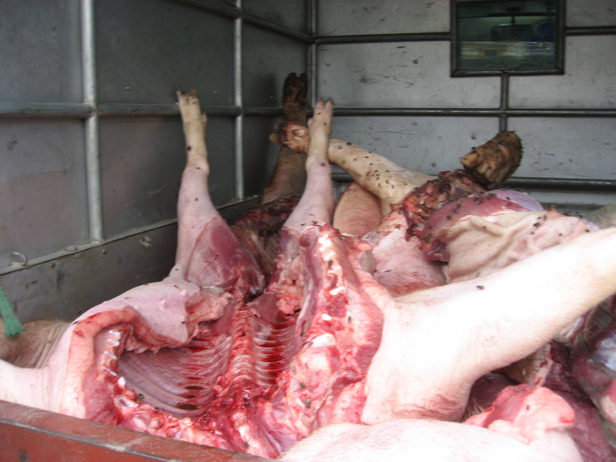TP -Phòng Cảnh sát môi trường Công an Hà Nội ập vào một số cơ sở thu mua lợn chết, lợn mắc dịch tai xanh (ở Thường Tín, Hà Nội) rồi giết mổ, sơ chế, bán cho các cơ sở chế biến thành ruốc, thịt...