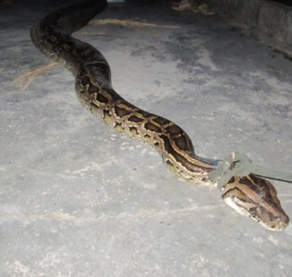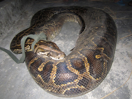Con trăn nặng hơn 35kg, dài gần 4m, đường kính bụng của trăn lớn có chỗ hơn 40cm. Theo nhiều người cao tuổi trong làng thì đây là một con trăn cái thuộc loài trăn gấm.