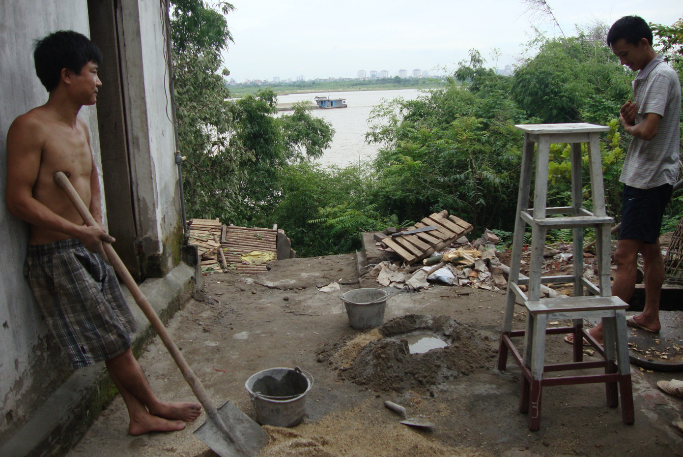 Anh Nguyễn Đức Phương cho biết, khoàng 2 giờ sáng ngày 6-7 khi cả gia đình đang ngủ bỗng nghe tiếng động lớn, căn nhà của anh rung lên. Anh Phương vội cầm chiếc đèn pin chạy ra ngoài và soi thì thấy toàn bộ chuồng lợn, gà đã bị ụp xuống sát mép nước sông Hồng. Một số con lợn, gà của gia đình anh bị cuốn theo dòng nước, gia đình anh Lê Văn Công ở khu vực sông Đuống cũng rơi vào tình cảnh tương tự.