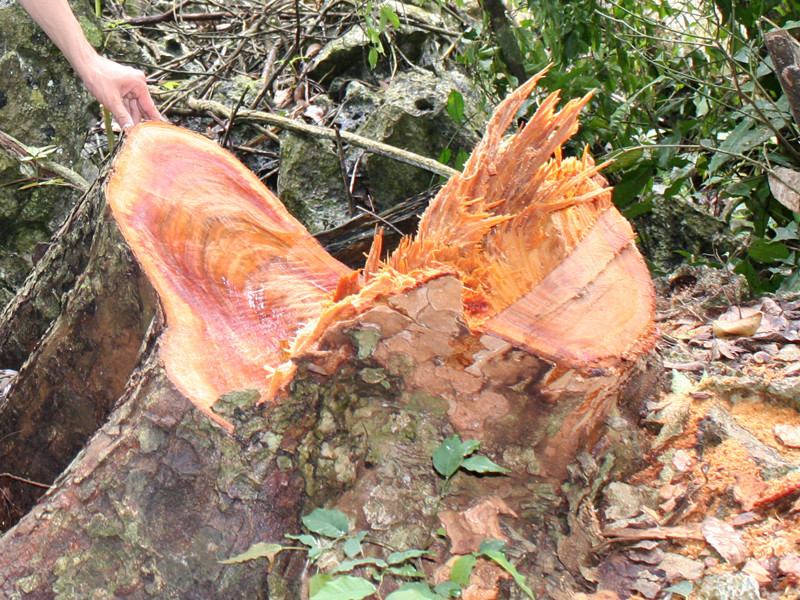 Anh K cho biết, khoảng bảy năm trước, nơi đây nhiều cây đinh, nghiến đại thụ, đường kính thân hai đến ba mét. Tuy nhiên, với lợi nhuận “ngang ma tuý”, khoảng năm năm trở lại đây, lâm tặc ra sức “xẻ thịt” rừng.