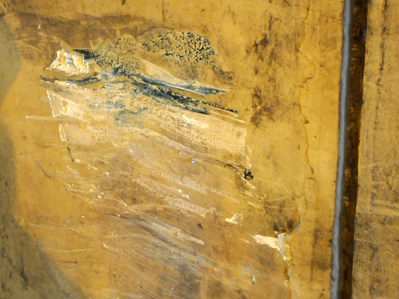 | Phần mép dưới đầu xe tải bị hư hỏng do đâm vào thành hầm. |