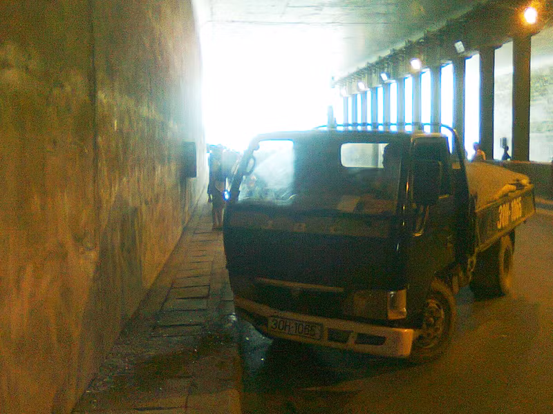 Theo một cảnh sát giao thông tại hiện trường, vào thời điểm trên, xe tải chở xi măng BKS 30H-1065 chết máy, đang dừng sửa dưới hầm Kim Liên (theo hướng từ Đại Cồ Việt – Kim Liên mới).