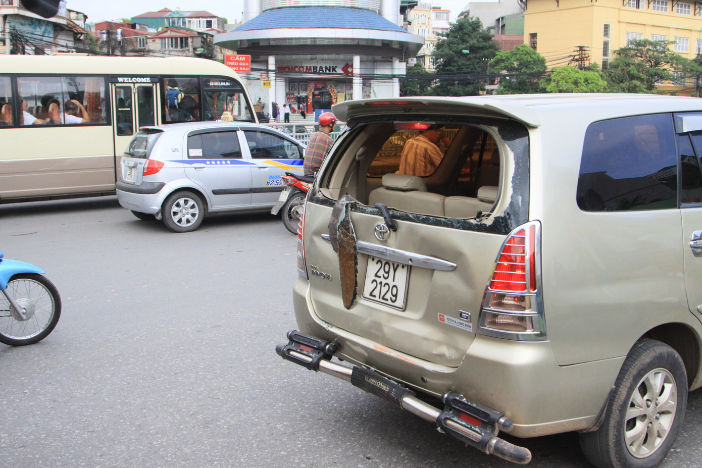 Vào khoảng thời gian trên, ô tô buýt mang BKS 30T-5142 đâm vào đuôi ô tô Toyota mang BKS 29Y-2129, khiến chiếc xe này móp phần đuôi và vỡ kính chắn gió.