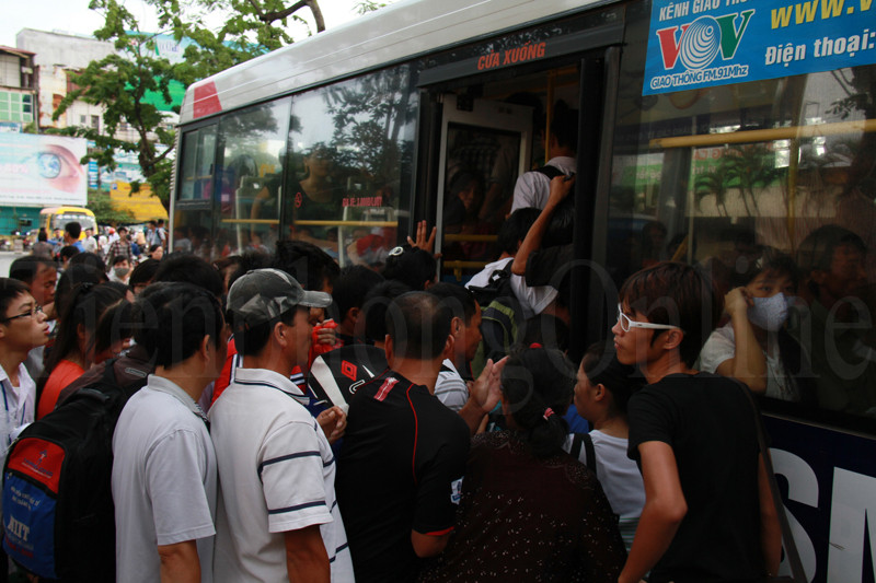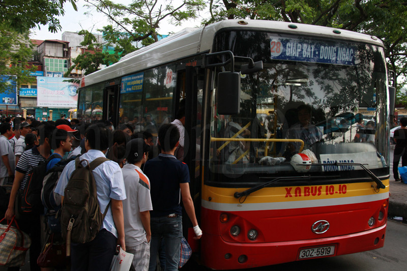 | Rất nhiều người chờ xe buýt. Ảnh: Trường Phong. |