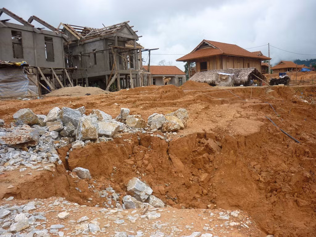 Theo ông Châu, người dân nhiều lần kiến nghị xây kè chắn, nhưng chưa được đáp ứng. Dân tái định cư ở đây muốn xây công trình phụ cũng không có đất. Sau này, nếu còn mưa nhiều, nhà rất dễ sập.