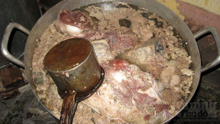 | Thịt hổ được luộc trên 4 nồi to để tách lấy xương... nấu cao. |