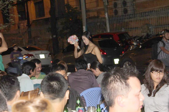 22 giờ đêm, chúng tôi có mặt tại một quán nhậu trên góc đường Khuông Việt và Âu Cơ, quận Tân Phú, TPHCM, vào giờ này quán nhậu vẫn đông đúc các ''chiến hữu Lưu Linh''. Tiếng nói chuyện, tiếng cụng ly của các tay nhậu vẫn đều đặn thì bỗng dưng gần như tắt lịm và mọi ánh mắt đều hướng về một cô gái xuất hiện với một bộ đồ cực kỳ mát mẻ, để lộ ra hơn phân nửa của bộ ngực no tròn, trắng nõn và một chất giọng khá ngọt ngào nói qua micro: “Em xin chào mấy anh, hôm nay em xin phép được phục vụ vài điệu nhảy sôi động và mong được mấy anh thương em út vất vả, mua ủng hộ vài cây kẹo kéo”.