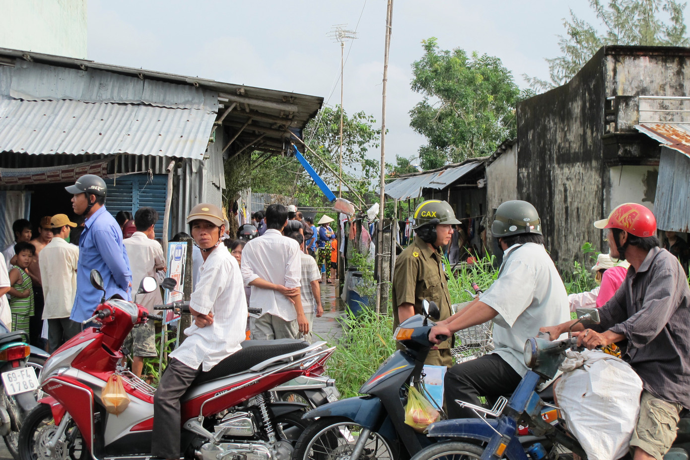 Bà Hồ Thị Lan, ở khu nhà trọ, ấp Cây Trâm A nói: “Đêm qua, nghe nói cá sấu hì hụp dưới mương trước cửa nhà trọ, mẹ con tụi tui chỉ còn biết cách đóng cửa, nằm im.”
