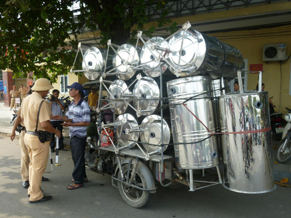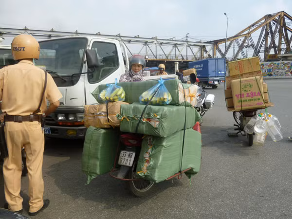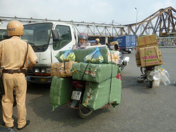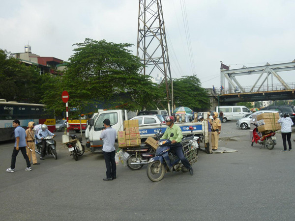 | Thiếu tá Trần Quang Vinh, Đội phó Đội CSGT số 1 cho biết, ba ngày vừa qua đơn vị đã xử lý gần 10 trường hợp vi phạm. Sáng nay, Đội CSGT số 1 còn tập trung xử lý các trường hợp xe máy chở hàng cồng kềnh tại khu vực gần chợ Đồng Xuân, Bắc Qua. |