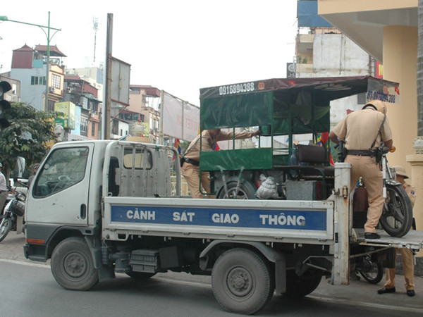 Các đội Cảnh sát giao thông số 1 đến 7 cùng đồng loạt ra quân kiểm tra, xử phạt nghiêm các trường hợp giả danh thương binh đi xe ba bánh trên các tuyến phố Kim Mã, Thụy Khuê, Giang Văn Minh, Yên Phụ, Nguyễn Trãi, Đê La Thành....