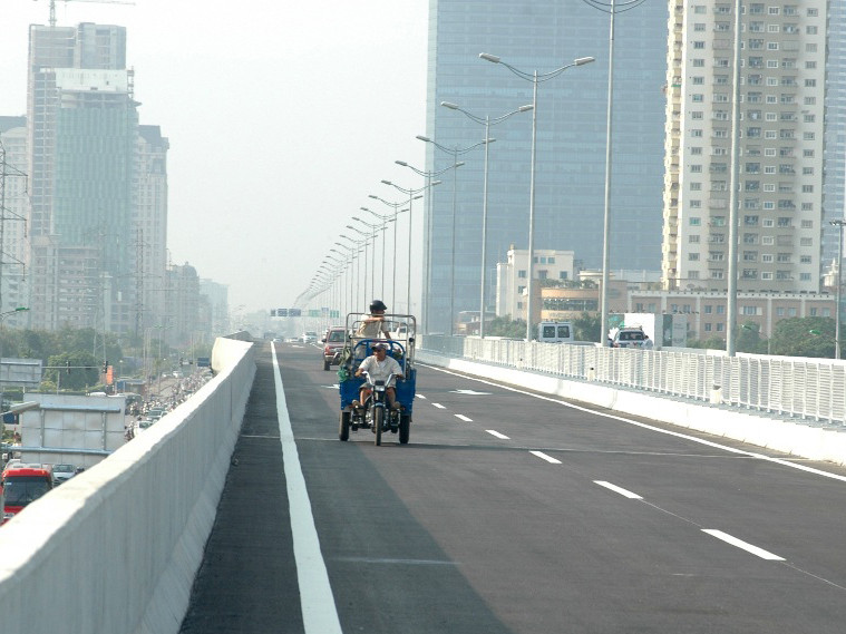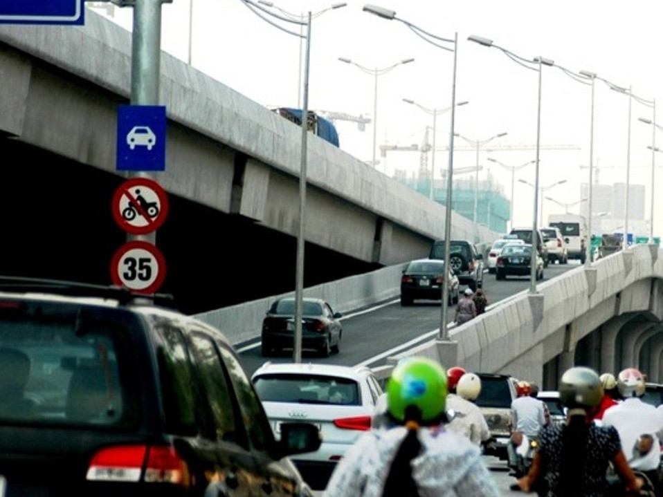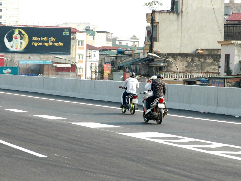 TPO – Một ngày sau khi đường cao tốc trên cao hiện đại nhất Thủ đô được thông xe, hàng loạt xe máy, xe ba gác ngang nhiên đi lại lộn xộn, mặc dù đã có biển cấm các phương tiện này đi lên.
