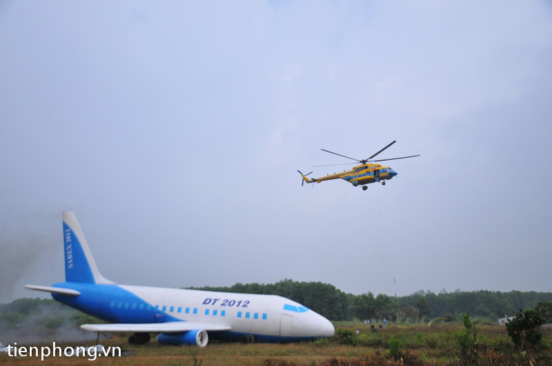 Đây là tình huống giả định diễn tập cứu nạn khẩn cấp diễn ra vào sáng 26-10, với sự tham gia của hơn 300 người của ngành Hàng không dân dụng, Bộ Quốc phòng, các lực lượng thuộc cảnh sát thuộc TP Hà Nội.