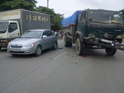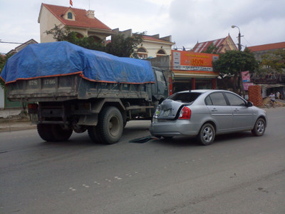 Vào thời điểm trên xe con mang BKS 37A 036 47 lưu thông theo hướng Hà Nội – Vinh đến km 401 + 500 (đối diện cổng huyện đội Quỳnh Lưu) bỗng phanh lại đột ngột khiến xe tải mang BKS 37S 1766 lái xe Hồ Sỹ Thường 31 tuổi trú xã Quỳnh Văn (Quỳnh Lưu) không kịp trở tay nên đã đâm vào đuôi. Hậu quả hai xe bị bẹp dúm phần đầu và phần đuôi, một người trong xe con bị thương nhẹ.