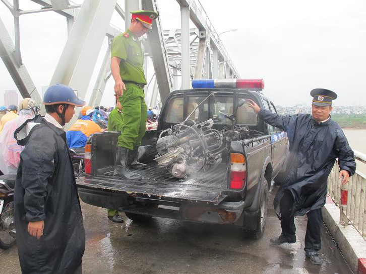 Vừa cùng mọi người mang bình chữa cháy ra dập lửa, người ướt sũng vì mưa, Trung tá Phạm Văn Cương (Đội Cảnh sát giao thông số 1 - Công an Thành phố Hà Nội) kể lại: Khoảng 8h20 phút hôm nay (29-10), nhận được tin báo của người dân có vụ cháy xe máy ở nhịp 10, cầu Chương Dương, hướng từ Gia Lâm về Hà Nội. Trung tá Cương cùng các bảo vệ chốt trực ở đầu cầu mang ba bình cứu hỏa mini ra hiện trường.