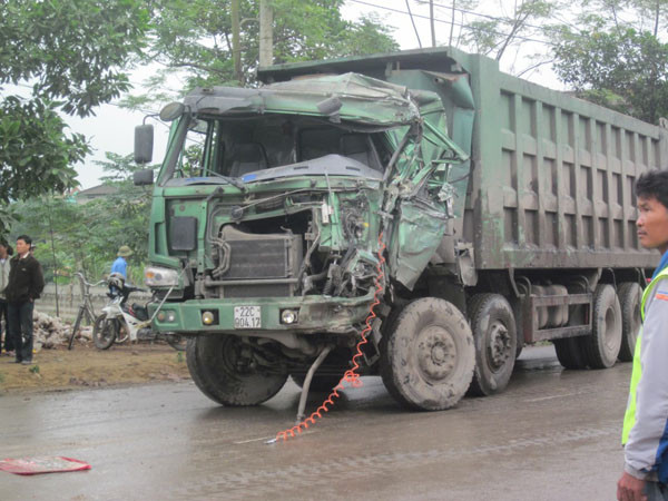 | Chiếc xe tải bị nát đầu. Ảnh: TL |