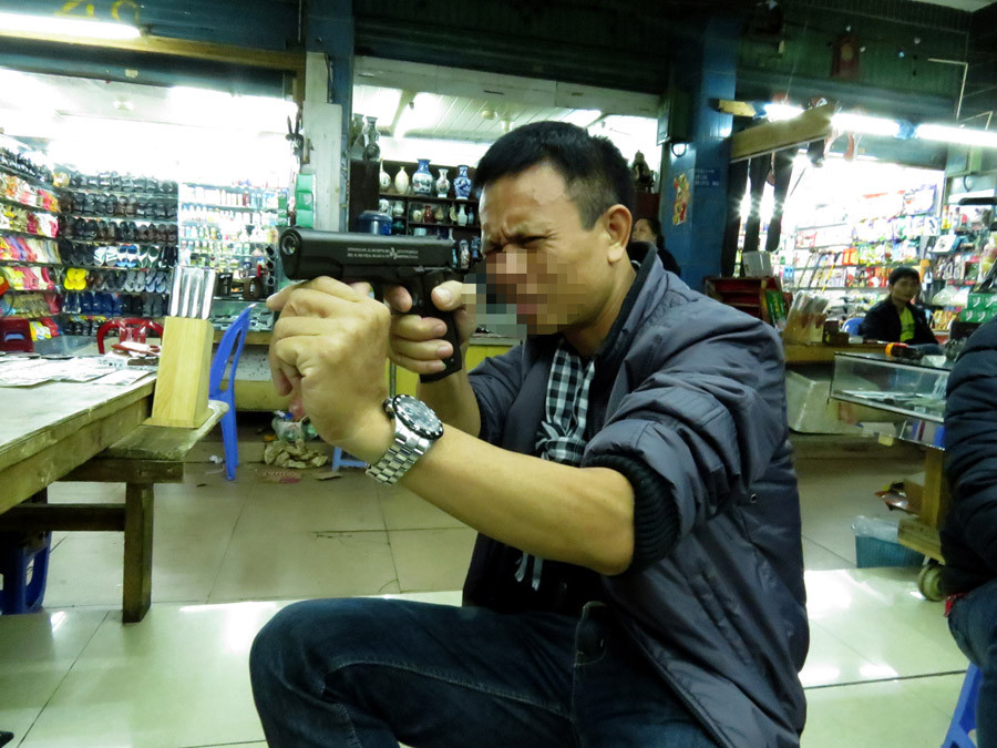 Thấy khách chần chừ hỏi súng hoa cải, tay buôn súng nói tiếp: “Dùng hoa cải giờ quê, chỉ giang hồ vặt mới hỏi. Các anh muốn bao nhiêu cũng có. Thích, em dẫn vào kho, bắn thử. Ở đây súng, dao, hơi cay, dùi cui điện... loại gì cũng có”.