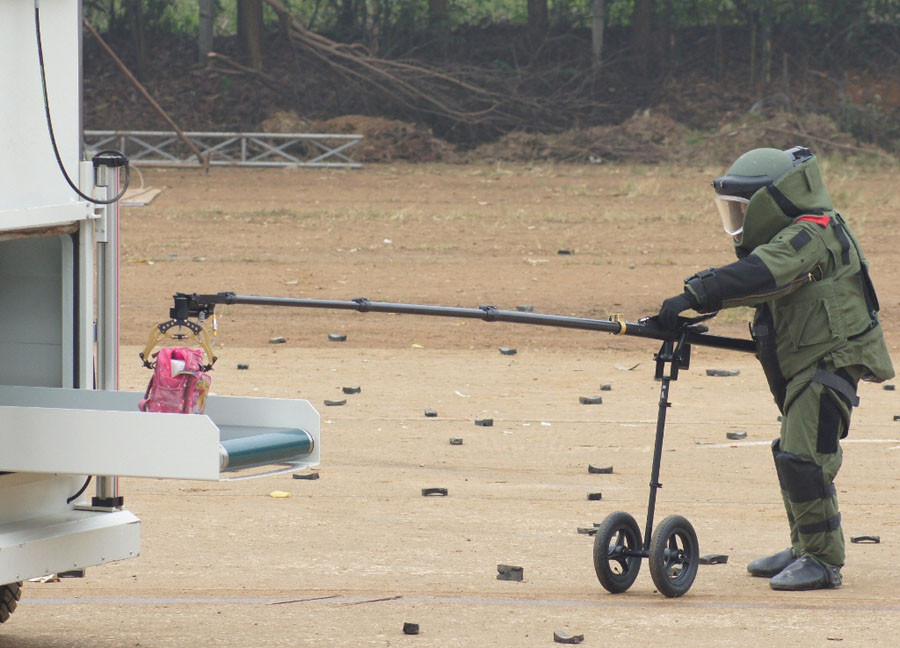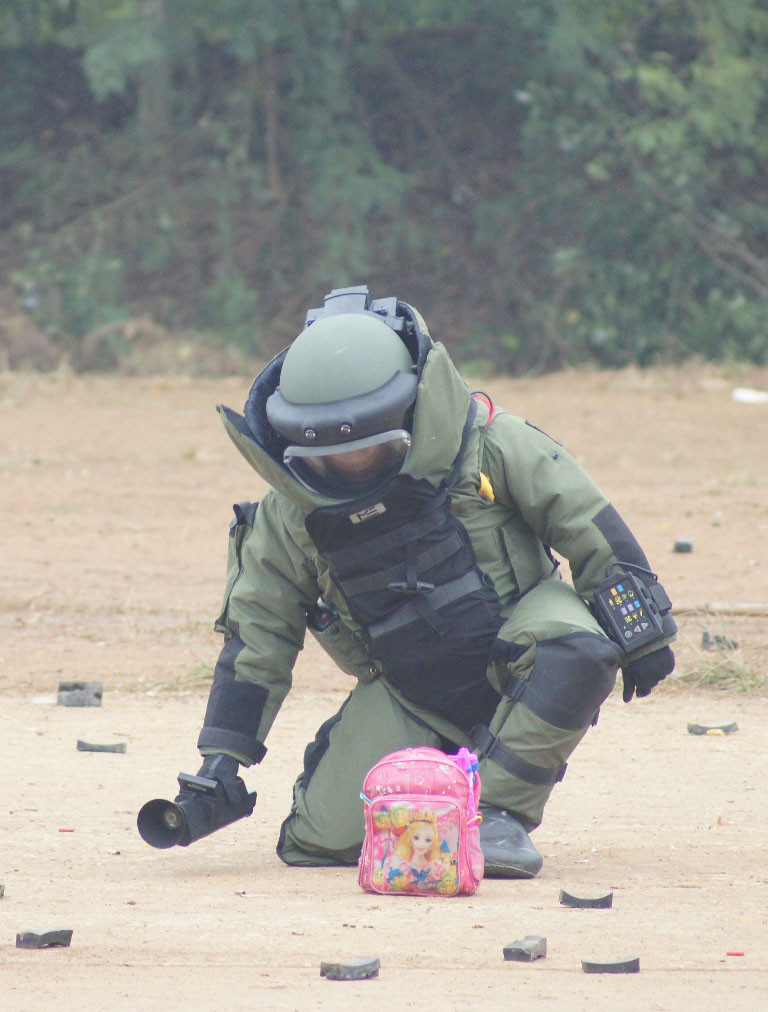 Kiểm tra, xử lý an toàn quả bom tự chế do một đối tượng biểu tình cố tình bỏ lại.