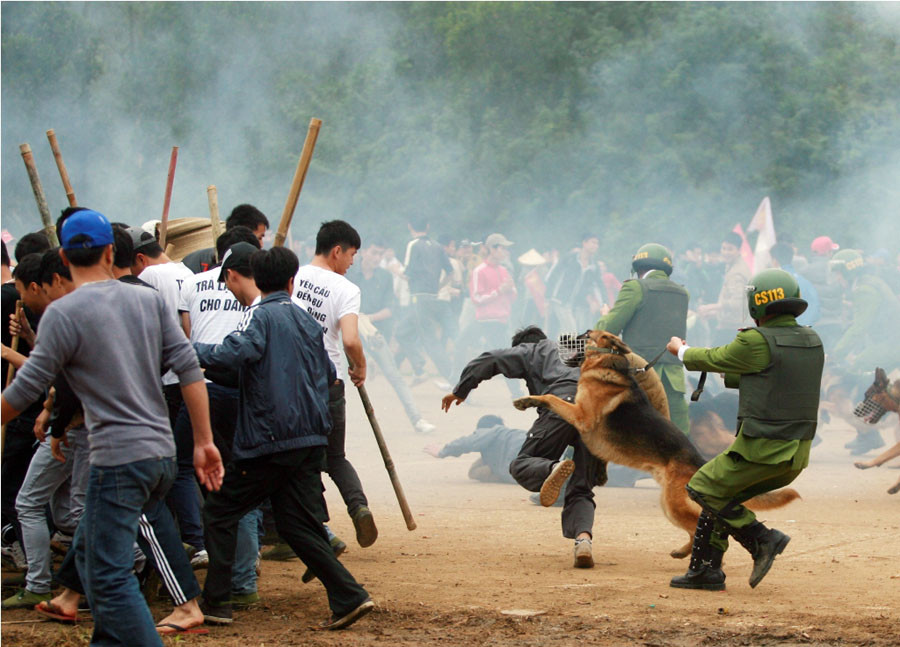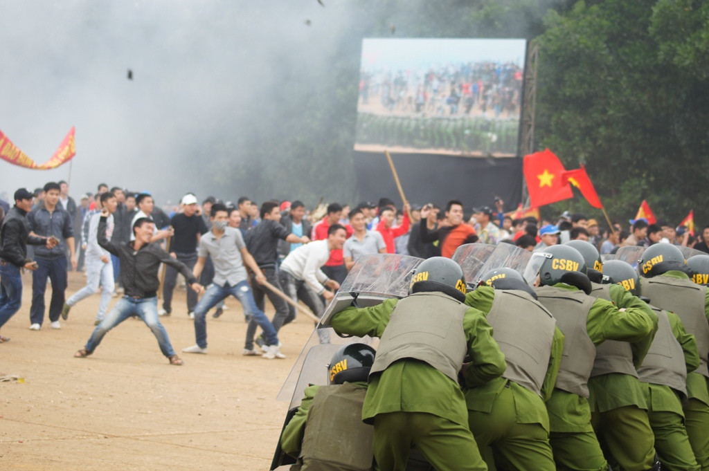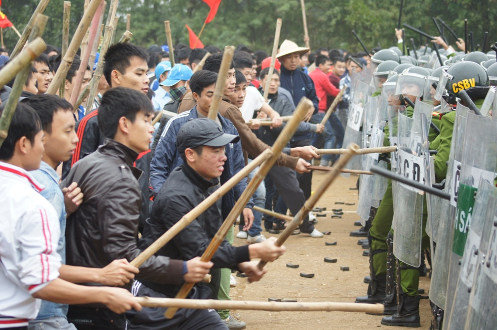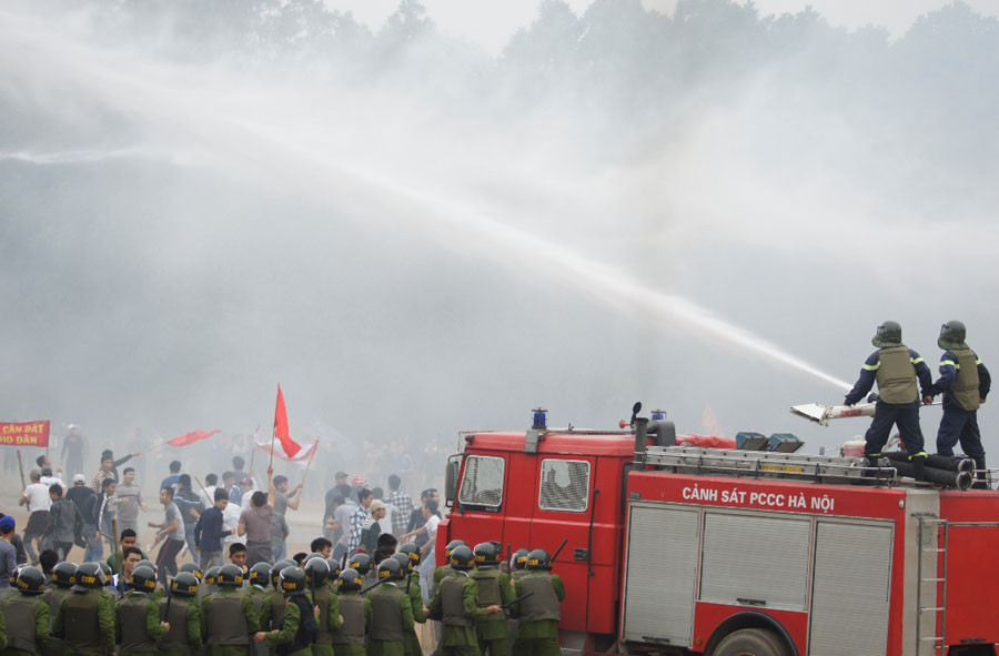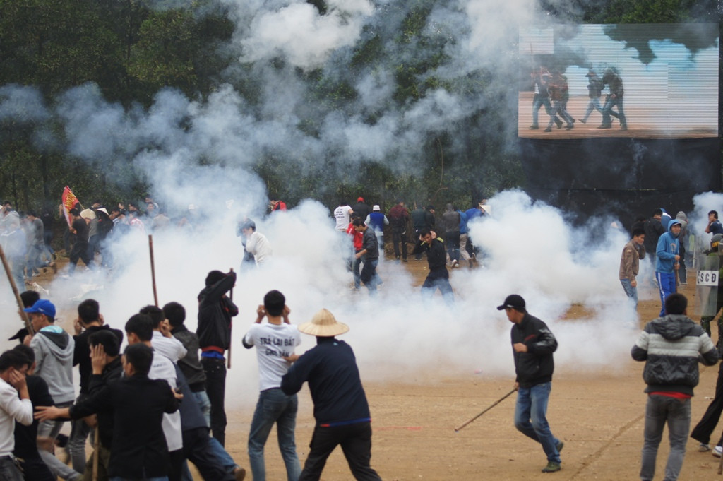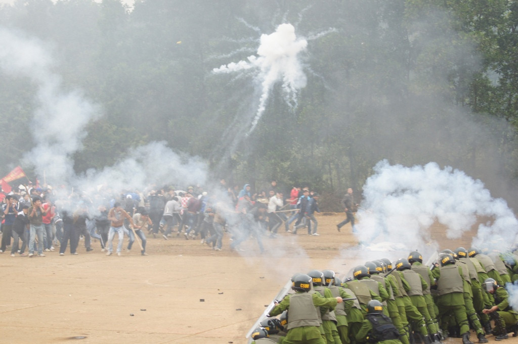 Lực lượng cảnh sát buộc phải bắn quả nổ và quả rít để trấn áp, giải tán đám đông.