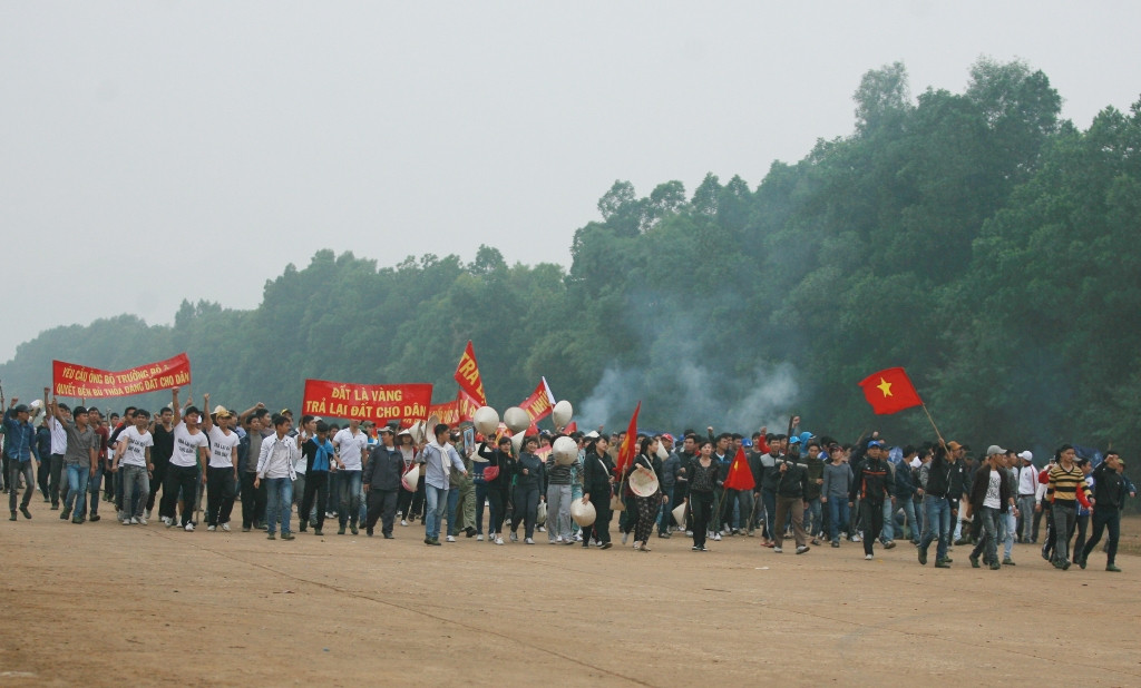 Thêm một đoàn người biểu tình, khiếu kiện về đất đai kéo về hướng Bộ A.