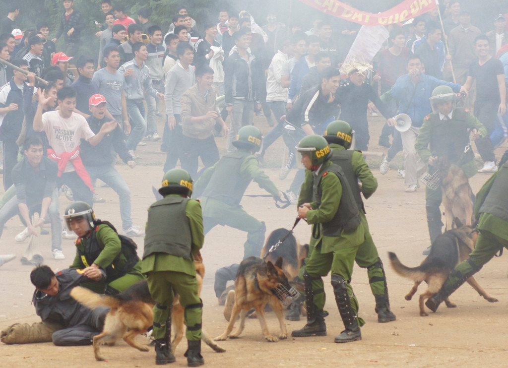 Đưa chó nghiệp vụ hỗ trợ đột kích truy bắt những đối tượng hung hãn, cầm đầu kích động gây rối, biểu tình.