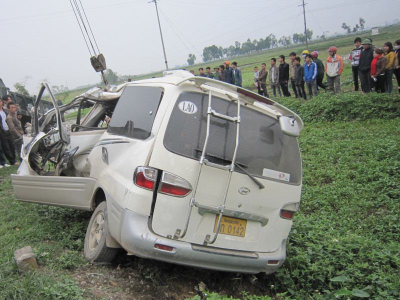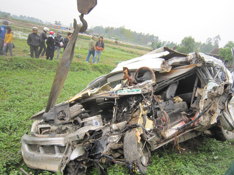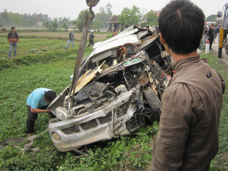 Cú va chạm rất mạnh khiến "xế hộp" bay xuống ruộng, hỏng nặng. Hai người ngồi trên xe này mắc kẹt, bị thương rất nặng. Trong đó, lái xe tên Huỳnh (thường trú khối Nam Hồng, xã Diễn Hồng, huyện Diễn Châu) tử vong sau đó vài phút..