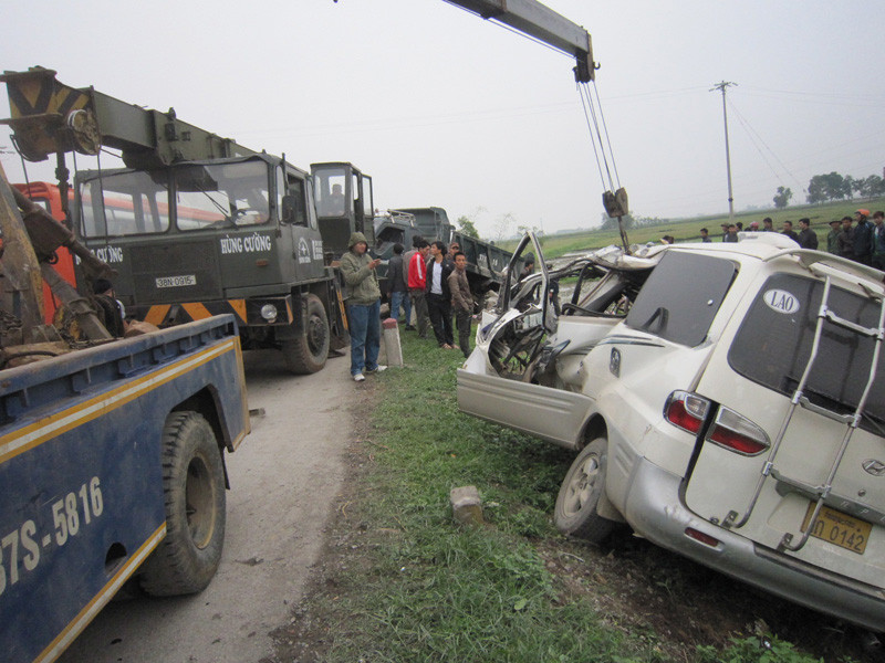 Vào thời gian trên, "xế hộp" màu trắng đang lưu thông trên quốc lộ 1A theo hướng Há Nội - Vinh, tại km 415 + 700 (địa bàn xã Diễn Hồng huyện Diễn Châu, Nghệ An), bất ngờ tông thẳng vào ô tô tải BKS 37S 1642 đi hướng ngược lại.
