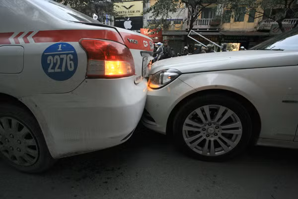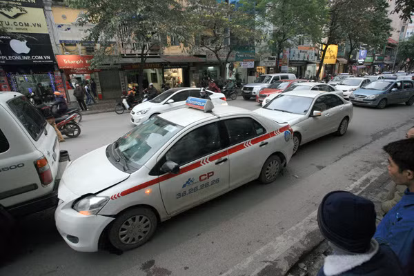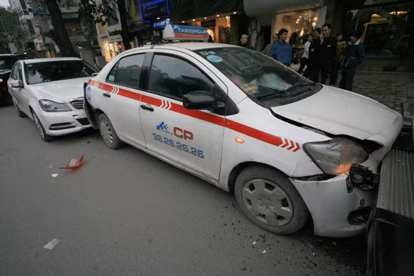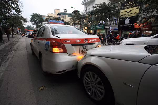 Vào thời gian trên, ba ô tô đang lưu thông cùng chiều trên phố Huế, đến khu vực gần chợ Hôm, thì đâm vào nhau.