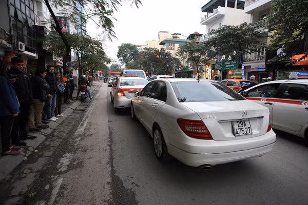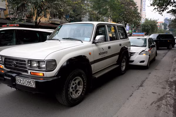 Đi đầu là chiếc Toyota Land Cruiser mang BKS 80LD – 0667. Kẹp giữa là taxi mang BKS 30S – 6562. Xe sau cùng hiệu Mercedes mang BKS 29A – 475.27.