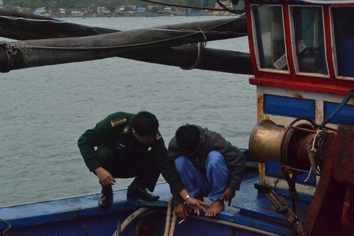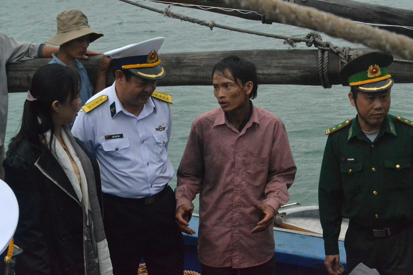 | Khuôn mặt của thuyền trưởng và ngư dân vẫn còn lộ sợ hãi. |