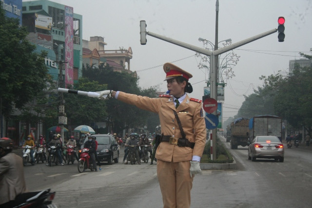 | Hình ảnh các nữ CSGT Thanh Hoá “xuống đường” có thể giúp tình trạng giao thông "mềm mại" hơn. Ảnh: Hoàng Lam |