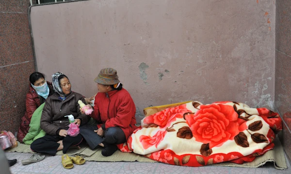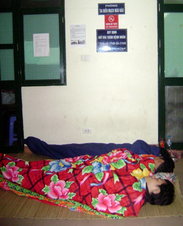 Ngủ trước cửa phòng điều trị tai biến mạch máu não, bệnh viện Bạch Mai.