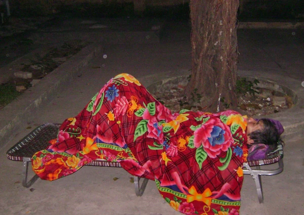 Không ngủ được vì cái lạnh thấu tim và cơn ho hành hạ, bà Dịp ngồi dậy để con trai xoa lưng cho đỡ đau. Bà bảo: “Không phải ngủ ở ngoài đường là phúc lắm rồi”. Gặng hỏi vì sao không thuê nhà trọ cho thoải mái, bà chỉ ôm ngực ho và lắc đầu.