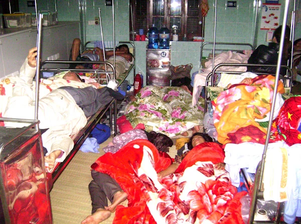 Bệnh viện quá tải, 2 - 3 bệnh nhân nằm chung một giường nên rất chật chội, lôi thôi. Tối đến, cả người và đồ đạc cùng…nhét vào gầm giường. Được ngủ gầm giường đã là sướng lắm rồi. Nhiều người phải ngủ ngoài trời, rất tội”!