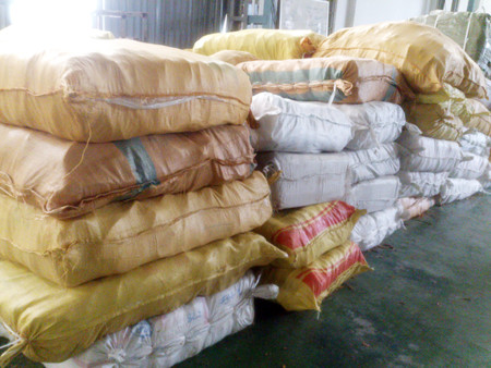 | Hàng trăm bao tải mì chính và dép nhựa không rõ nguồn gốc bị cơ quan chức năng phát hiện, thu giữ. Ảnh: T.N. |