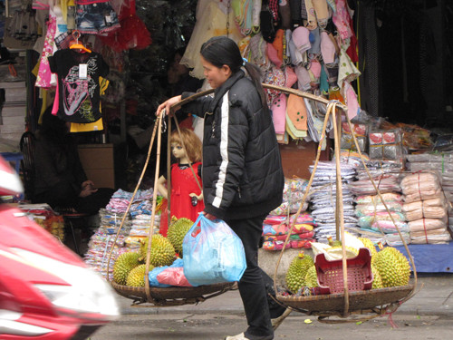 Gánh hàng mưu sinh nặng trĩu trên vai. Ảnh: Trường Phong.