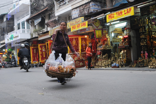 Những người bán hàng rong này đều là người nghèo, tranh thủ lúc mùa vụ rảnh rỗi, lên Hà Nội mưu sinh, kiếm thêm đồng tiền lo cho gia đình, con cái. Ảnh: Tuấn Nguyễn.