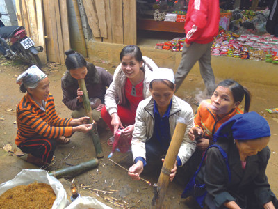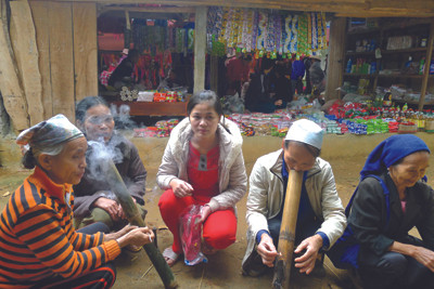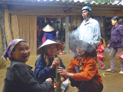 Quan sát, tôi lấy lạ một điều, chị em nơi đây hút thuốc lào rất đặc biệt. Thuốc được cho vào điếu thật nhiều, một người châm lửa rồi điếu được chuyền cho năm bảy chị em cùng hút, cùng nhả khỏi vào giữa tạo thành những vòng tròn quyện vào nhau như không có hồi kết. Hỏi anh Diễn được giải thích rằng: Đó là một nét văn hóa đặc trưng của chị em người Mường vùng này. Chị em sống với nhau cực kỳ chân thành. Bất kể gia đình nhà ai ở bản có chuyện vui hay buồn, chị em đều đến để giúp đỡ. Và họ thường lấy điếu thuốc lào để sẻ chia.