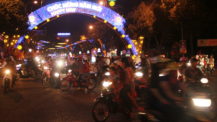 | Các tuyến phố Đà Nẵng tấp nập dòng người, phương tiện, nhất là ở đường hoa Xuân.. |
