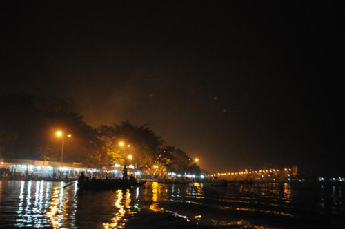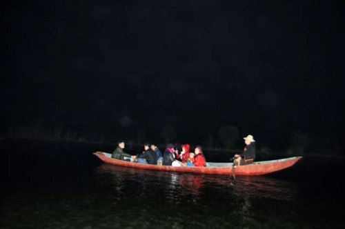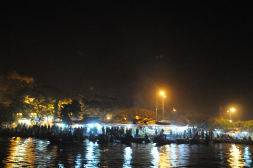 | Từ 3h ngày 15-2, nhiều du khách đã rời nhà nghỉ để xuống thuê đò vào Hương Tích. |