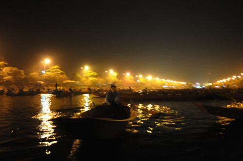 | Các chủ đò chỉ dùng đèn pin để ra tín hiệu tránh va chạm. |