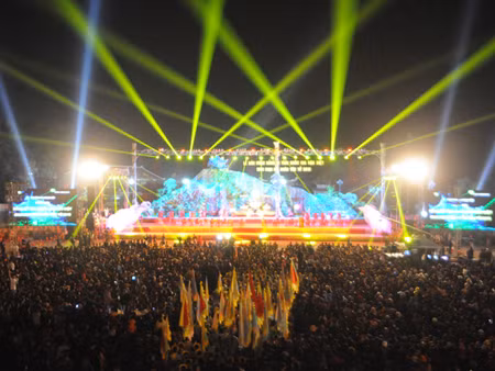 | Từ 19h ngày mồng 9 tháng Giêng, hàng ngàn du khách có mặt tại khu vực Chùa Trình. |