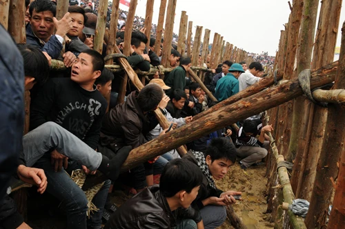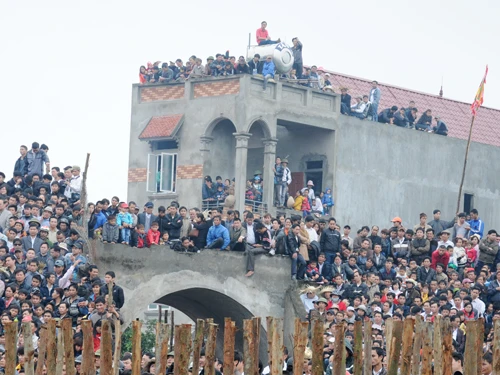 | Năm nay cũng vậy, khán giả vẫn phải chen chúc, nhích từng bước một mới có thể vào được bên trong sới chọi. |