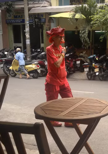 “Cũng có nhiều người phát ngôn ác ý khi thấy tôi ăn mặc thế này, họ nói “Thằng này khùng”. Nói vậy là lạc hậu, là… khùng. Cần phải nhìn xa ra thế giới để thấy đây là nghệ thuật, là… kỳ nhân”, ông nói. Mỗi ngày ông kiếm được 250.000 - 300.000 đồng, nhưng tiền ăn uống cũng đã hết 130.000 - 150.000 đồng. “Giá cả đắt đỏ quá!”, ông lắc đầu nói. Ông có 2 cô con gái tốt nghiệp đại học, đã lấy chồng và sinh con. Ông không muốn nhờ vả ai hết nên mới đi bán vé số kiếm sống.