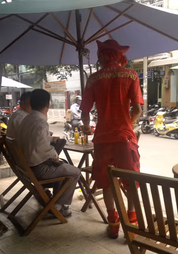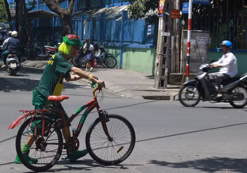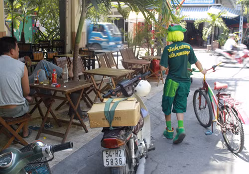 Mặc mỗi ngày một bộ đồ màu mè; mũ, tóc giả, kính, giày được thiết kế lạ đời, chạy trên chiếc xe đạp 2 màu… Nhìn vào ai cũng bật cười. Đó là hình ảnh “dị nhân” bán vé số ở Sài Gòn.