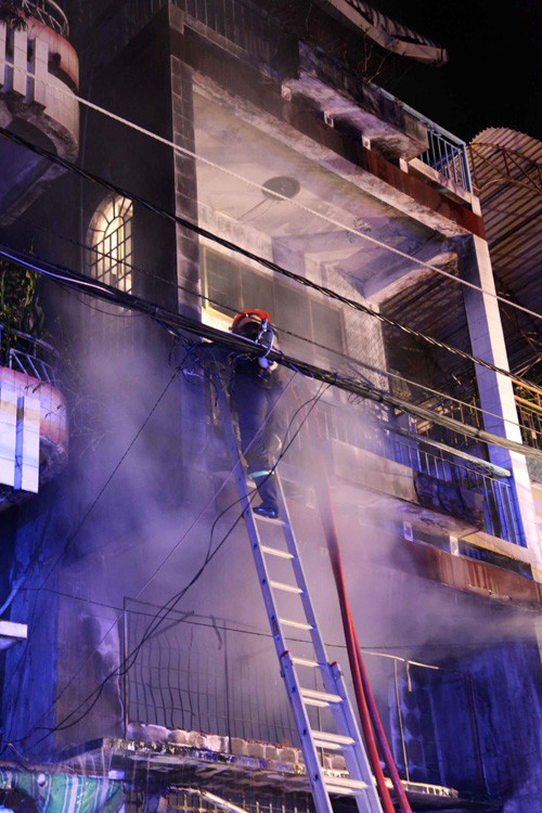Trong nhà lúc này được xác định có 5 người (2 nam, 3 nữ). Khi đám cháy bốc lên một thanh niên nhanh chóng nhảy qua ban công nhà kế bên thoát thân và chỉ bị thương nhẹ.